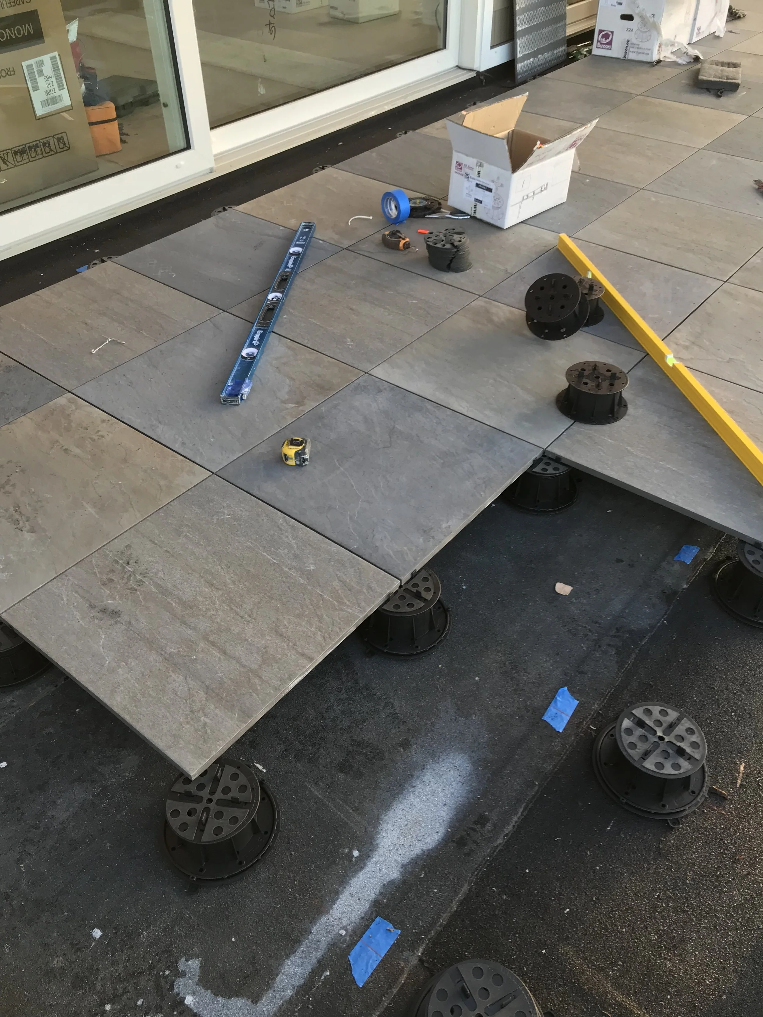 Adjustable pedestals create perfectly level surfaces, even on sloped structures.